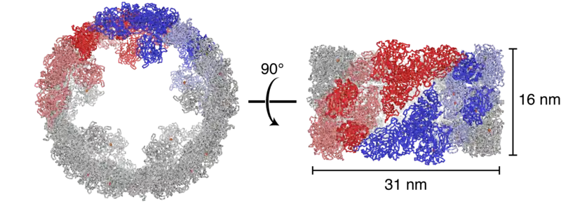 Hexamers are characteristic of arthropod hemocyanins.[17] A hemocyanin of the tarantula Eurypelma californicum[3] is made up of 4 hexamers or 24 peptide chains. A hemocyanin from the house centipede Scutigera coleoptrata[18] is made up of 6 hexamers or 36 chains. Horseshoe crabs have an 8-hexamer (i. e. 48-chain) hemocyanin. Simple hexamers are found in the spiny lobster Panulirus interruptus and the isopod Bathynomus giganteus.[17] Peptide chains in crustaceans are about 660 amino acid residues long, and in chelicerates they are about 625. In the large complexes there is a variety of variant chains, all about the same length; pure components do not usually self-assemble.