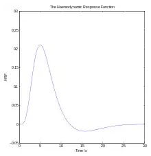 Functional magnetic resonance imaging (fMRI), is the medical imaging technique used to measure the haemodynamic response of the brain in relation to the neural activities.[12] It is one of the most commonly used devices to measure brain functions and is relatively inexpensive to perform in a clinical setting. The onset of neural activity leads to a systematic series of physiological changes in the local network of blood vessels that include changes in the cerebral blood volume per unit of brain tissue (CBV), changes in the rate of cerebral blood flow, and changes in the concentration of oxyhemoglobin and deoxyhemoglobin. There are different fMRI techniques that can pick up a functional signal corresponding to changes in each of the previously mentioned components of the haemodynamic response. The most common functional imaging signal is the blood-oxygen-level dependent signal (BOLD), which primarily corresponds to the concentration of deoxyhemoglobin.[13] The BOLD effect is based on the fact that when neuronal activity is increased in one part of the brain, there is also an increased amount of cerebral blood flow to that area which is the basis of haemodynamic response. This increase in blood flow produces an increase in the ratio of oxygenated hemoglobin relative to deoxygenated hemoglobin in that specific area. The difference in magnetic properties of oxygenated and deoxygenated hemoglobin is what allows fMRI imaging to produce an effective map of which neurons are active and which are not. In short, deoxygenated hemoglobin is paramagnetic while oxygenated hemoglobin is diamagnetic. Diamagnetic blood (oxyhemoglobin) interferes with the magnetic resonance (MR) signal less and this leads to an improved MR signal in that area of increased neuronal activity. However, Paramagnetic blood (deoxyhemoglobin) makes the local magnetic field inhomogenous. This has the effect of dephasing the signal emitted in this domain, causing destructive interference in the observed MR signal. Therefore, greater amounts of deoxyhemoglobin lead to less signal. Neuronal activity ultimately leads to an increase in local MR signaling corresponding to a decrease in the concentration of deoxyhemoglobin.[14]