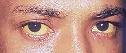 Diagnosis of hemolytic jaundice is based mainly on visual assessment of the yellowing of the patient's skin and sclera, while the cause of hemolysis must be determined using laboratory tests.[10] Treatment of the condition is specific to the cause of hemolysis, but intense phototherapy and exchange transfusion can be used to help the patient excrete accumulated bilirubin.[11] Complications related to hemolytic jaundice include hyperbilirubinemia and chronic bilirubin encephalopathy, which may be deadly without proper treatment.[12][13]