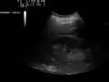 Ultrasonographic view of the abdomen demonstrating fluid within Morison's pouch.