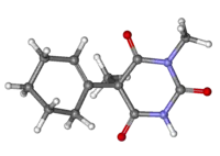 Hexobarbital or hexobarbitone, sold both in acid and sodium salt forms as Citopan, Evipan, and Tobinal, is a barbiturate derivative having hypnotic and sedative effects. It was used in the 1940s and 1950s as an agent for inducing anesthesia for surgery, as well as a rapid-acting, short-lasting hypnotic for general use, and has a relatively fast onset of effects and short duration of action.[1] It was also used to murder women prisoners at Ravensbrück concentration camp.[2] Modern barbiturates (such as Thiopental) have largely supplanted the use of hexobarbital as an anesthetic, as they allow for better control of the depth of anesthesia.[3] Hexobarbital is still used in some scientific research.[4]