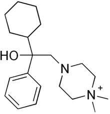 Hexocyclium is an antimuscarinic. It is used in the form of its methyl sulfate, called hexocyclium metilsulfate.[1]