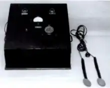 The idea for an automated external defibrillator was first advanced in the 1970s by Archibald Diack (1907 – 1993), a surgeon in Portland, Oregon. Diack and his team developed a portable unit that could diagnose an abnormal heart rhythm and deliver either a defibrillatory current or a pacing pulse, as indicated by the internal logic circuit. The device was produced by the Cardiac Resuscitator Corporation and marketed as the "Heart-Aid".[58] It was designed for temporary use by laypeople in emergency situations before professional care could be administered. The Heart-Aid utilized a plastic airway with an embedded electrode. An electrical current was transmitted from the capacitor, through the plastic airway device, to an electrode placed over the sternum. There was also a breath detector, which was a safeguard to prevent shocking people who were breathing. It included printed instructions and diagrams for the rescuer to properly apply the electrodes, as well as a speech synthesis chip to give verbal instructions to the rescuer.[58] By the late 1980s, the small company had been purchased by Emerson Radio Corporation, and other manufacturers soon entered the field. Current models use electrode pads attached to the chest.