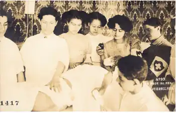 During most of Mexico's wars in the nineteenth and early twentieth centuries, camp followers known as soldaderas nursed soldiers wounded in warfare.[55] During the Mexican Revolution (1910-1920) care of soldiers in northern Mexico was also undertaken by the Neutral White Cross, founded by Elena Arizmendi Mejia after the Mexican Red Cross refused to treat revolutionary soldiers. The Neutral White Cross treated soldiers regardless of their faction.