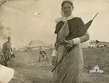Grace McDougall (1887–1963) was the energetic commandant of the First Aid Nursing Yeomanry (FANY), which had formed in 1907 as an auxiliary to the home guard in Britain. McDougall at one point was captured by the Germans but escaped. The British army wanted nothing to do with them so they drove ambulances and ran hospitals and casualty clearing stations for the Belgian and French armies.[74][75]