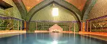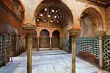 Islam stresses the importance of cleanliness and personal hygiene.[38] Islamic hygienical jurisprudence, which dates back to the 7th century, has a number of elaborate rules. Taharah (ritual purity) involves performing wudu (ablution) for the five daily salah (prayers), as well as regularly performing ghusl (bathing), which led to bathhouses being built across the Islamic world.[39][40] Islamic toilet hygiene also requires washing with water after using the toilet, for purity and to minimize germs.[41]