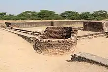The Indus Valley civilization in Asia shows early evidence of public water supply and sanitation. The system the Indus developed and managed included a number of advanced features. An exceptional example is the Indus city of Lothal (c. 2350–1810 BCE).[22] In Lothal the ruler's house had their own private bathing platform and latrine, which was connected to an open street drain that discharged into the towns dock. A number of the other houses of the acropolis had burnished brick bathing platforms, that drained into a covered brick sewer, held together with a gypsum-based mortar, that ran to a soak pit outside the towns walls, while the lower town offered soak jars (large buried urns, with a hole in the bottom to permit liquids to drain), the latter of which were regularly emptied and cleaned.[23] Water was supplied from two wells in the town, one in the acropolis, and the other on the edge of the dock.
