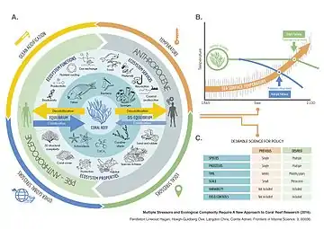 - Pendleton, L. H., Hoegh-Guldberg, O., Langdon, C. and Comte, A. (2016) "Multiple stressors and ecological complexity require a new approach to coral reef research". Frontiers in Marine Science, 3: 36. doi:10.3389/fmars.2016.00036.