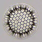 The Antarctic oscillation (also called the Southern Annular Mode) is a belt of westerly winds or low pressure surrounding Antarctica which moves north or south according to which phase it is in.[58] In its positive phase, the westerly wind belt that drives the Antarctic Circumpolar Current intensifies and contracts towards Antarctica,[59] while its negative phase the belt moves towards the Equator. Winds associated with the Antarctic oscillation cause oceanic upwelling of warm circumpolar deep water along the Antarctic continental shelf.[60][61] This has been linked to ice shelf basal melt,[62] representing a possible wind-driven mechanism that could destabilize large portions of the Antarctic Ice Sheet.[63] The Antarctic oscillation is currently in the most extreme positive phase that has occurred for over a thousand years. Recently this positive phase has been further intensifying, and this has been attributed to increasing greenhouse gas levels and later stratospheric ozone depletion.[64][65] These large-scale alterations in the physical environment are "driving change through all levels of Antarctic marine food webs".[56][57] Ocean warming is also changing the distribution of Antarctic krill.[56][57] Antarctic krill is the keystone species of the Antarctic ecosystem beyond the coastal shelf, and is an important food source for marine mammals and birds.[66]