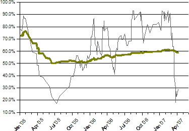 The higher total case fatality ratio after the end of 2005 may reflect the widespread circulation in Vietnam of a less-lethal clade of H5N1 in 2005, which was subsequently brought under control. The change was nonetheless interpreted by some as indicating that the virus itself was becoming more deadly over time.[29] In fact, when less-virulent strains die off, the surviving strains are the more virulent. Such difficulties in interpretation underscore that the global case fatality ratio can serve as but a crude and imperfect summary of the current complex situation with its many contributing factors, and not a clear or reliable predictive tool. If and when an influenza pandemic arises from one of the currently circulating pre-pandemic strains of Asian lineage HPAI A(H5N1), the mortality rates for the resulting human adapted pandemic strain cannot be predicted with any confidence.