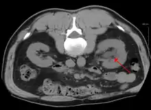 The choice of imaging depends on the clinical presentation (history, symptoms and examination findings). In the case of renal colic (one sided loin pain usually accompanied by a trace of blood in the urine) the initial investigation is usually a spiral or helical CT scan. This has the advantage of showing whether there is any obstruction of flow of urine causing hydronephrosis as well as demonstrating the function of the other kidney. Many stones are not visible on plain X-ray or IVU but 99% of stones are visible on CT and therefore CT is becoming a common choice of initial investigation. CT is not used, however, when there is a reason to avoid radiation exposure, e.g. in pregnancy.[11][12]