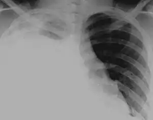Hydrothorax is a type of pleural effusion in which transudate accumulates in the pleural cavity. This condition is most likely to develop secondary to congestive heart failure, following an increase in hydrostatic pressure within the lungs. More rarely, hydrothorax can develop in 10% of patients with ascites which is called hepatic hydrothorax. It is often difficult to manage in end-stage liver failure and often fails to respond to therapy.