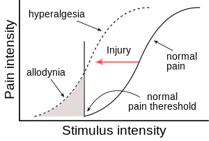 16. Jensen TS, Finnerup NB (Sep 2014). "Allodynia and hyperalgesia in neuropathic pain: clinical manifestations and mechanisms". Lancet Neurol. 13 (9): 924–35. doi:10.1016/S1474-4422(14)70102-4. PMID 25142459. S2CID 25011309.