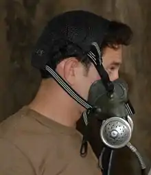 Treatment gases are generally oxygen or oxygen rich mixtures which would constitute an unacceptable fire hazard if used as the chamber gas. Chamber oxygen concentration is limited due to fire hazard and the high risk of fatality or severe injury in the event of a chamber fire. US Navy specifications for oxygen content of chamber air allow a range from 19% to 25%. If the oxygen fraction rises above this limit the chamber must be ventilated with air to bring the concentration to an acceptable level.[6] To minimize the requirement for venting, oxygen-rich treatment gases are usually provided to the patient by built in breathing system (BIBS) masks, which vent exhaled gas outside the chamber. BIBS masks are provided with straps to hold them in place over the mouth and nose, but are often held in place manually, so they will fall away if the user has an oxygen toxicity convulsion.