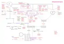 Arteries are blood vessels that carry blood away from the heart to other areas of the body. They are mainly responsible for transporting oxygen and nutrients to various parts of the body and removing carbon dioxide and wastes. Arteries are generally elastic, which allows them to bend and fit throughout the body and maintain a stable blood pressure.[12] Arterial stiffness occurs as people age and increases the risk of stroke and cardiovascular diseases. Elastin and collagen are of the major determinants of arterial stiffness as well as matrix metalloproteases, advanced glycation endproducts (AGE), inflammation, neuroendocrine signaling, and genetics.[12][13] The more stiff arteries are, the more pressure the heart needs to exert to pump blood throughout the body and therefore, the higher blood pressure a person has.[14]