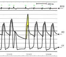 Pressure tracings demonstrating the Brockenbrough–Braunwald–Morrow sign