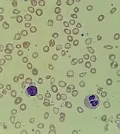 Hypochromic anemia is a generic term for any type of anemia in which the red blood cells are paler than normal. (Hypo- refers to less, and chromic means colour.) A normal red blood cell has a biconcave disk shape and will have an area of pallor in its center when viewed microscopically. In hypochromic cells, this area of central pallor is increased. This decrease in redness is due to a disproportionate reduction of red cell hemoglobin (the pigment that imparts the red color) in proportion to the volume of the cell. Clinically the color can be evaluated by the mean corpuscular hemoglobin (MCH) or mean corpuscular hemoglobin concentration (MCHC). The MCHC is considered the better parameter of the two as it adjusts for effect the size of the cell has on its amount of hemoglobin.[1] Hypochromia is clinically defined as below the normal MCH reference range of 27–33 picograms/cell in adults or below the normal MCHC reference range of 33–36 g/dL in adults.[2]