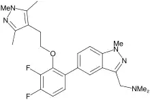 1-(5-{3,4-Difluoro-2-[2-(1,3,5-trimethyl-1H-pyrazol-4-yl)ethoxy]phenyl}-1-methyl-1H-indazol-3-yl)-N,N-dimethylmethanamine | |