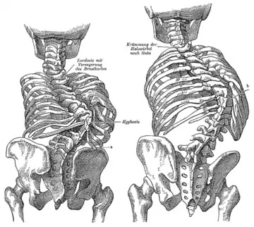 | Kyphosis (left) and scoliosis (right) depicting iliocostal contact (a) | |