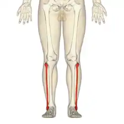 Location and position of the fibula bones (red) in the legs