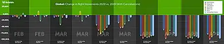 - By mid-April 2020, Airports Council International (ACI) observed a 95% fall in traffic in 18 airports in major aviation markets in Asia-Pacific and the Middle East.[89]