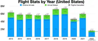 In 2022, recovery of travel demand exceeded airlines' ability to hire back pilots and ground staff quickly enough, causing several months of widespread delays and cancellations across the United States[12] and Europe.[13]