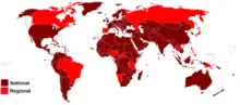 Countries where there were suspensions of Catholic Masses with the presence of the people during the COVID-19 pandemics, at regional level (in red) or national level (in burgundy).