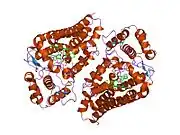 Indoleamine-pyrrole 2,3-dioxygenase (IDO or INDO EC 1.13.11.52) is a heme-containing enzyme physiologically expressed in a number of tissues and cells, such as the small intestine, lungs, female genital tract or placenta.[5] In humans is encoded by the IDO1 gene.[6] IDO is involved in tryptophan metabolism. It is one of three enzymes that catalyze the first and rate-limiting step in the kynurenine pathway, the O2-dependent oxidation of L-tryptophan to N-formylkynurenine, the others being indolamine-2,3-dioxygenase 2 (IDO2)[7] and tryptophan 2,3-dioxygenase (TDO).[8] IDO is an important part of the immune system and plays a part in natural defense against various pathogens.[9][10] It is produced by the cells in response to inflammation and has an immunosuppressive function because of its ability to limit T-cell function and engage mechanisms of immune tolerance.[11] Emerging evidence suggests that IDO becomes activated during tumor development, helping malignant cells escape eradication by the immune system. Expression of IDO has been described in a number of types of cancer, such as acute myeloid leukemia, ovarian cancer or colorectal cancer. IDO is part of the malignant transformation process and plays a key role in suppressing the anti-tumor immune response in the body, so inhibiting it could increase the effect of chemotherapy as well as other immunotherapeutic protocols.[12][13][14]