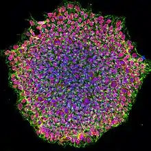 An attractive feature of human iPS cells is the ability to derive them from adult patients to study the cellular basis of human disease. Since iPS cells are self-renewing and pluripotent, they represent a theoretically unlimited source of patient-derived cells which can be turned into any type of cell in the body. This is particularly important because many other types of human cells derived from patients tend to stop growing after a few passages in laboratory culture. iPS cells have been generated for a wide variety of human genetic diseases, including common disorders such as Down syndrome and polycystic kidney disease.[70][71] In many instances, the patient-derived iPS cells exhibit cellular defects not observed in iPS cells from healthy subjects, providing insight into the pathophysiology of the disease.[72] An international collaborated project, StemBANCC, was formed in 2012 to build a collection of iPS cell lines for drug screening for a variety of disease. Managed by the University of Oxford, the effort pooled funds and resources from 10 pharmaceutical companies and 23 universities. The goal is to generate a library of 1,500 iPS cell lines which will be used in early drug testing by providing a simulated human disease environment.[73] Furthermore, combining hiPSC technology and small molecule or genetically encoded voltage and calcium indicators provided a large-scale and high-throughput platform for cardiovascular drug safety screening.[74][75][76][77]