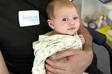 Newborns are exceptionally capable of facial discrimination and recognition shortly after birth.[12][13] Therefore, it is not surprising that infants develop strong facial recognition of their mother. Studies have shown that newborns have a preference for their mothers' faces two weeks after birth. At this stage, infants would focus their visual attention on pictures of their own mother for a longer period than a picture of complete strangers.[14] Studies have shown that infants even as early as four days old look longer at their mothers' face than at those of strangers only when the mother is not wearing a head scarf. This may suggest that hairline and outer perimeter of the face play an integral part in the newborn's face recognition.[15] According to Maurer and Salapateck, a one-month-old baby scans the outer contour of the face, with strong focus on the eyes, while a two-month-old scans more broadly and focuses on the features of the face, including the eyes and mouth.[10]