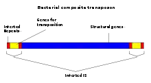 Insertion element (also known as an IS, an insertion sequence element, or an IS element) is a short DNA sequence that acts as a simple transposable element. Insertion sequences have two major characteristics: they are small relative to other transposable elements (generally around 700 to 2500 bp in length) and only code for proteins implicated in the transposition activity (they are thus different from other transposons, which also carry accessory genes such as antibiotic resistance genes). These proteins are usually the transposase which catalyses the enzymatic reaction allowing the IS to move, and also one regulatory protein which either stimulates or inhibits the transposition activity. The coding region in an insertion sequence is usually flanked by inverted repeats. For example, the well-known IS911 (1250 bp) is flanked by two 36bp inverted repeat extremities and the coding region has two genes partially overlapping orfA and orfAB, coding the transposase (OrfAB) and a regulatory protein (OrfA). A particular insertion sequence may be named according to the form ISn, where n is a number (e.g. IS1, IS2, IS3, IS10, IS50, IS911, IS26 etc.); this is not the only naming scheme used, however. Although insertion sequences are usually discussed in the context of prokaryotic genomes, certain eukaryotic DNA sequences belonging to the family of Tc1/mariner transposable elements may be considered to be, insertion sequences.[1]