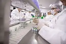 The Butantan Institute is the largest producer in Latin America (and one of the largest in the world) of immunobiologicals and biopharmaceuticals. In 2001 it produced ca. 110 million doses of vaccines and 300 thousand vials of hyperimmune sera. The institute is responsible for the production of 90% of the vaccines used in Brazil.[3] The institute contains a venom farm where researchers milk around a thousand snakes for their venom which is used to make antivenoms and for medical research.[4]