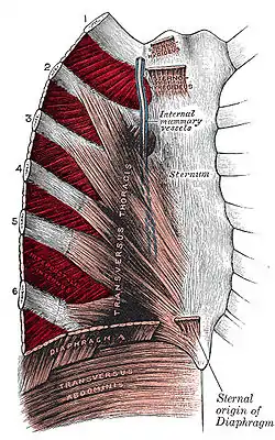 3. Innermost intercostal muscle also known as intercostalis intimus are deep layers of the internal intercostal muscles which are separated from them by a neurovascular bundle. The muscle fibers are directed downwards, forwards and laterally same as intercostalis internus muscle.[3]