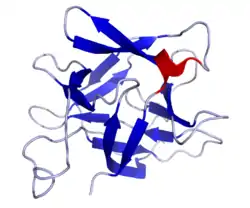 Interleukin-18 (IL-18), also known as interferon-gamma inducing factor is a protein which in humans is encoded by the IL18 gene.[5][6] The protein encoded by this gene is a proinflammatory cytokine. Many cell types, both hematopoietic cells and non-hematopoietic cells, have the potential to produce IL-18. It was first described in 1989 as a factor that induced interferon-γ (IFN-γ) production in mouse spleen cells.[7] Originally, IL-18 production was recognized in Kupffer cells, liver-resident macrophages. However, IL-18 is constitutively expressed in non-hematopoietic cells, such as intestinal epithelial cells, keratinocytes, and endothelial cells.[8] IL-18 can modulate both innate and adaptive immunity and its dysregulation can cause autoimmune or inflammatory diseases.[9][10]