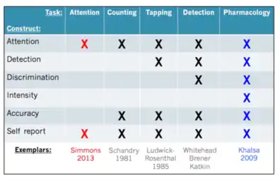 During the 1980s, psychophysiologists began to extensively examine cardiovascular interoception, introducing several different experimental tasks for studying the perception of the heartbeat: heartbeat counting,[15] heartbeat tapping,[24] and heartbeat detection.[25][26] Psychiatrists also began to look at the effects of pharmacological stimulation on the symptoms of panic disorder.[27] All of this further increased researchers' interest in interoception, including the development of theoretical models of the integration of interoceptive information within the body over time.[28]