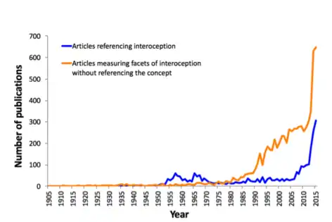 The increased interest in interoception during the late 1950s and the 1960s (as evidenced by the number of papers published) has been referred to as the "biofeedback blip". This was a phase during which many researchers examined humans' ability to gain control over autonomic functions as a method of treatment for various conditions.[21]