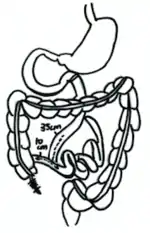 Intestinal bypass is a bariatric surgery performed on patients with morbid obesity to create an irreversible weight loss, when implementing harsh restrictions on the diets have failed.[1] Jejunocolic anastomosis was firstly employed.[2] Nonetheless, it led to some unexpected complications such as severe electrolyte imbalance and liver failure.[2] It was then modified to jejunoileal techniques. Viewed as a novel form of treatment for obesity, many intestinal bypass operations were carried out in the 1960s and 1980s.[2] Significant weight loss was observed in patients, but this surgery also resulted in several complications, for instance, nutritional deficiencies and metabolic problems. Due to the presence of surgical alternatives and anti-obesity medications, intestinal bypass is now rarely used.