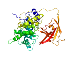 Intrinsic factor (IF), cobalamin binding intrinsic factor,[5] also known as gastric intrinsic factor (GIF), is a glycoprotein produced by the parietal cells (in humans) or chief cells (in rodents) of the stomach. It is necessary for the absorption of vitamin B12 later on in the distal ileum of the small intestine.[6] In humans, the gastric intrinsic factor protein is encoded by the CBLIF gene.[5] Haptocorrin (transcobalamin I) is another glycoprotein secreted by the salivary glands which binds to vitamin B12. Vitamin B12 is acid-sensitive and in binding to haptocorrin it can safely pass through the acidic stomach to the duodenum.[7]
