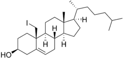 Iodocholesterol, or 19-iodocholesterol, also as iodocholesterol (131I) (INN) and NP-59, is a derivative of cholesterol with an iodine atom in the C19 position and a radiopharmaceutical.[1][2] When the iodine atom is a radioactive isotope (iodine-125 or iodine-131), it is used as an adrenal cortex radiotracer in the diagnosis of patients suspected of having Cushing's syndrome, hyperaldosteronism,[3] pheochromocytoma, and adrenal remnants following total adrenalectomy.[1][2]