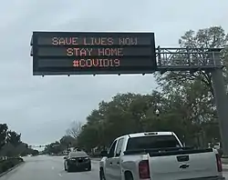 Traffic sign in South Carolina encouraging people to 'stay home' during the COVID-19 pandemic.