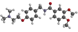 Itopride (INN; brand name Ganaton) is a prokinetic benzamide derivative. These drugs inhibit dopamine and acetylcholine esterase enzyme and have a gastrokinetic effect.[3] Itopride is indicated for the treatment of functional dyspepsia and other gastrointestinal conditions.[4] It is a combined D2 receptor antagonist and acetylcholinesterase inhibitor.[5][6]
