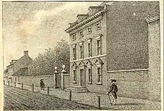 The prosperity of his law practice increased from this exposure, as did the demands on his time. In 1771, Adams moved his family to Braintree, Massachusetts, but kept his office in Boston. Adams noted on the day of the family's move, "Now my family is away, I feel no Inclination at all, no Temptation, to be any where but at my Office." After some time in the capital, he became disenchanted with the rural and "vulgar" Braintree as a home for his family – in August 1772, he moved them back to Boston. He purchased a large brick house on Queen Street, not far from his office.[47] In 1774, Adams and Abigail returned the family to the farm due to the increasingly unstable situation in Boston, and Braintree remained their permanent Massachusetts home.[48]