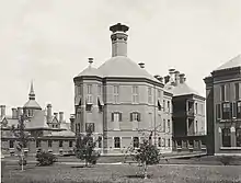 Initial plans for the hospital were drafted by surgeon John Shaw Billings, and the architecture designed by John Rudolph Niernsee and completed by Edward Clarke Cabot of the Boston firm of Cabot and Chandler in a Queen Anne style.[13] When completed in 1889 at a cost of $2,050,000 (US$50.8 million in 2022[11]), the hospital included what was then state-of-the-art concepts in heating and ventilation to check the spread of disease.