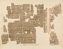 The Kahun Gynaecological Papyrus (also Petrie Medical Papyrus, Kahun Medical Papyrus, Lahun Medical Papyrus, or UC32057) is the oldest known medical text in Egyptian history, dated to c. 1825 BCE, during the Twelfth Dynasty.The Papyrus addresses gynecological health concerns, pregnancy, fertility, and various treatments.