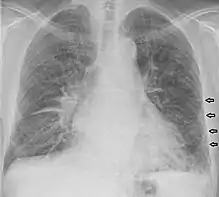 Kerley lines are a sign seen on chest radiographs with interstitial pulmonary edema. They are thin linear pulmonary opacities caused by fluid or cellular infiltration into the interstitium of the lungs. They are named after Irish neurologist and radiologist Peter Kerley.[1][2]