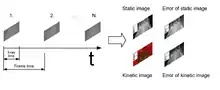The kinetic imaging modality records a series of images generated by penetrating radiation (e.g. X-ray photons) over a period of time. Moreover, from these series of (in many cases underexposed) images, the number of detected photons can be determined for each pixel. Observed photon counts fluctuate due to different noise sources and motion within the sample.[1][2] In its simplest form, the mean, variance, error of the mean, and error of the variance of the signal intensities are calculated from the image series for each pixel and a single image then is reconstructed from each of these statistical parameters. More elaborate calculations can correct for various types of noise of known spectra, such as detector noise or photon shot noise.[1][2]