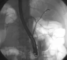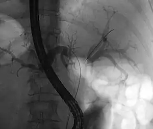 A Klatskin tumor (or hilar cholangiocarcinoma) is a cholangiocarcinoma (cancer of the biliary tree) occurring at the confluence of the right and left hepatic bile ducts. The disease was named after Gerald Klatskin, who in 1965 described 15 cases and found some characteristics for this type of cholangiocarcinoma[1][2][3]