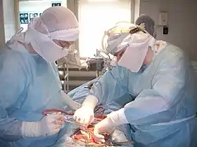 A laminotomy is an orthopaedic neurosurgical procedure that removes part of the lamina of a vertebral arch in order to relieve pressure in the vertebral canal.[1] A laminotomy is less invasive than conventional vertebral column surgery techniques, such as laminectomy because it leaves more ligaments and muscles attached to the spinous process intact and it requires removing less bone from the vertebra.[1] As a result, laminotomies typically have a faster recovery time and result in fewer postoperative complications. Nevertheless, possible risks can occur during or after the procedure like infection, hematomas, and dural tears.[2] Laminotomies are commonly performed as treatment for lumbar spinal stenosis and herniated disks.[2] MRI and CT scans are often used pre- and post surgery to determine if the procedure was successful.[2]