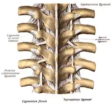 During a laminotomy, the individual lies on his or her stomach with the back facing up towards the physician.[1] An initial incision is made down the middle of the back exposing the vertebrae on which the laminotomy will be performed.[1] In this procedure, the spinous process and the ligaments of the vertebral column are kept intact, but the muscles adjacent to the vertebral column known as the paraspinous muscles (example: spinalis muscle) must be separated from the spinous process and vertebral arch.[1] In a unilateral laminotomy, these muscles are detached only from the side on which the laminotomy is being performed. During a bilateral laminotomy, these muscles must be removed on both sides of the vertebrae.[1] The ligaments connecting the lamina of upper and lower vertebrae, known as Ligamenta flava are often removed or remodeled in this procedure to adjust for the small amount of bone lost.[2] Using either a microscope or an endoscope to have a visual of the procedure, a small surgical drill is used to remove a part of bone from one or both laminae of the vertebrae.[1] Laminotomies can be performed on multiple vertebrae during the same surgery; this is known as a multi-level laminotomy.[1]