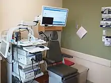 A laryngology exam and procedure room.